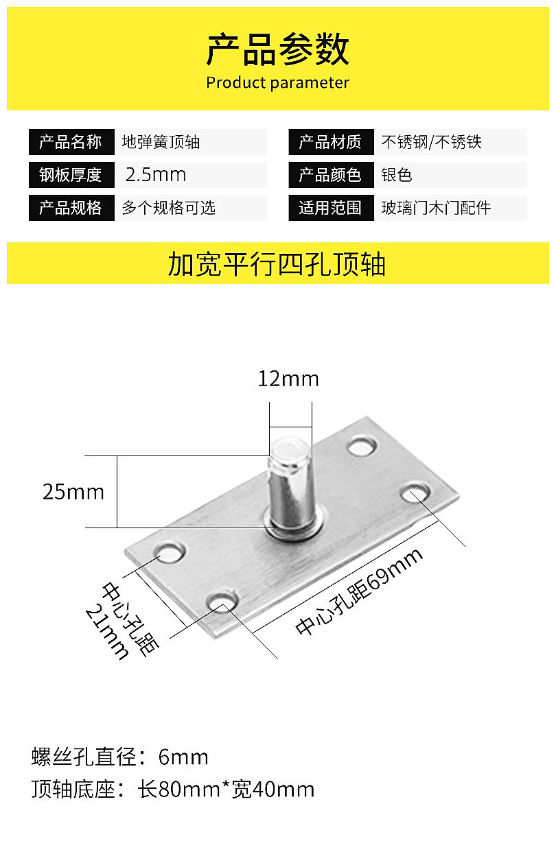 玻璃门顶轴不锈钢地弹簧门上轴